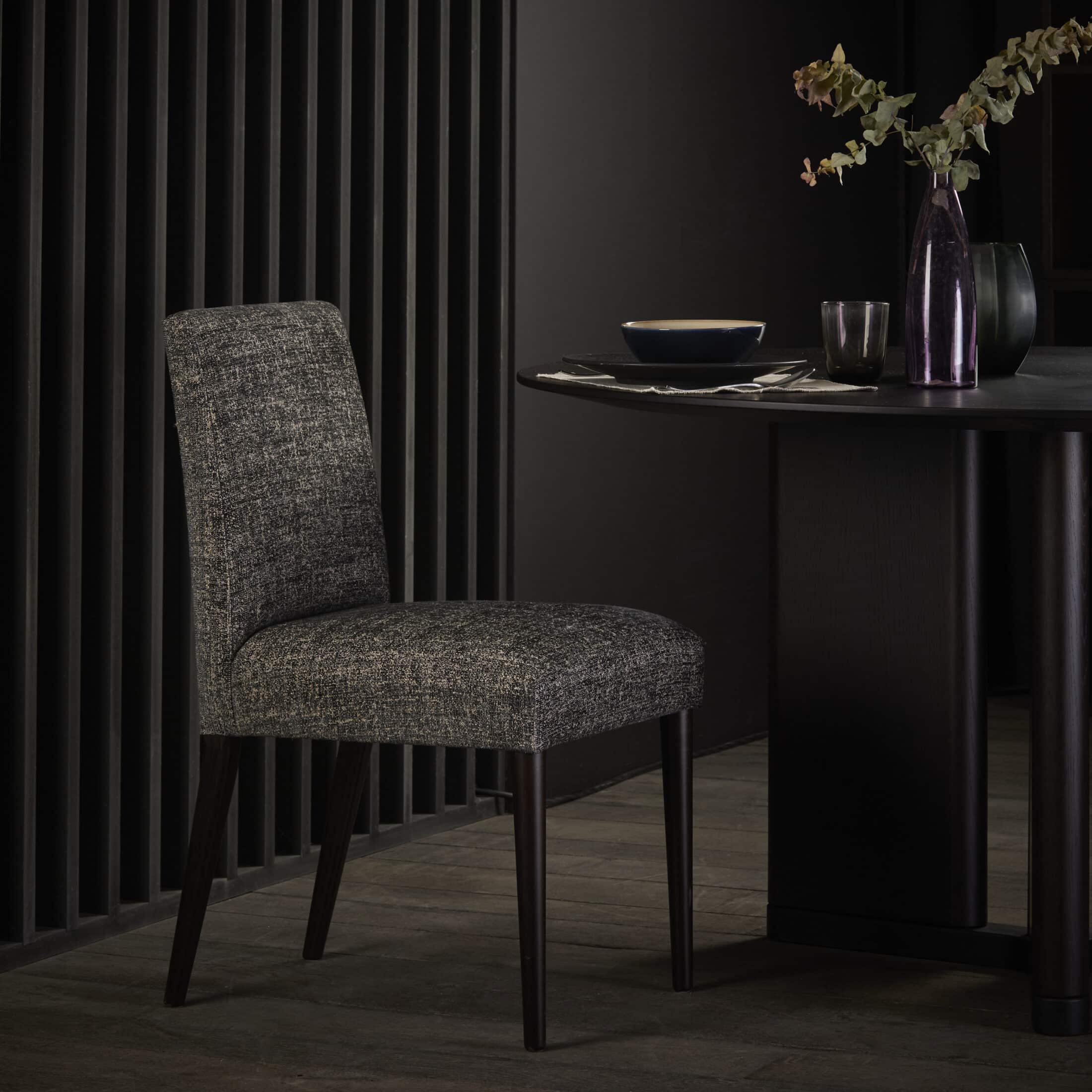 Beechwood and scandinavian hardpine frame, glued, screwed and doweled. Beechwood feet. Stretch belts seat and back. Fully upholstered.