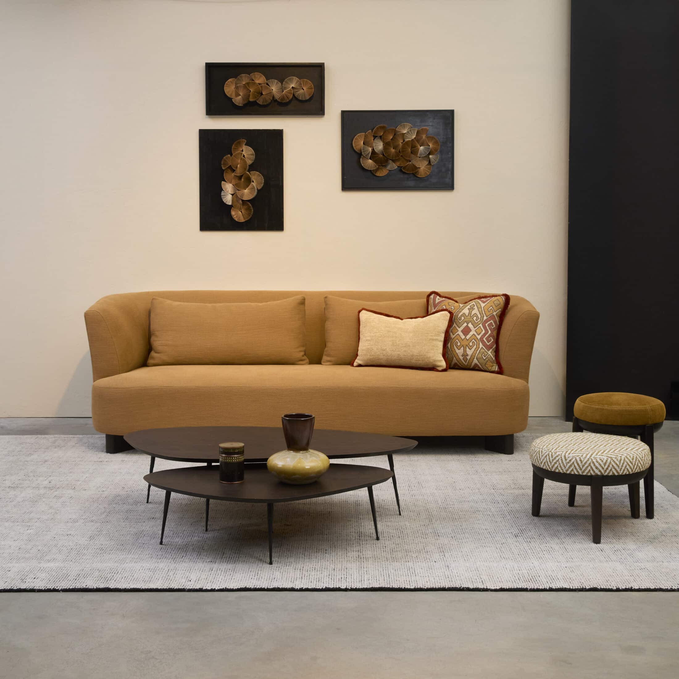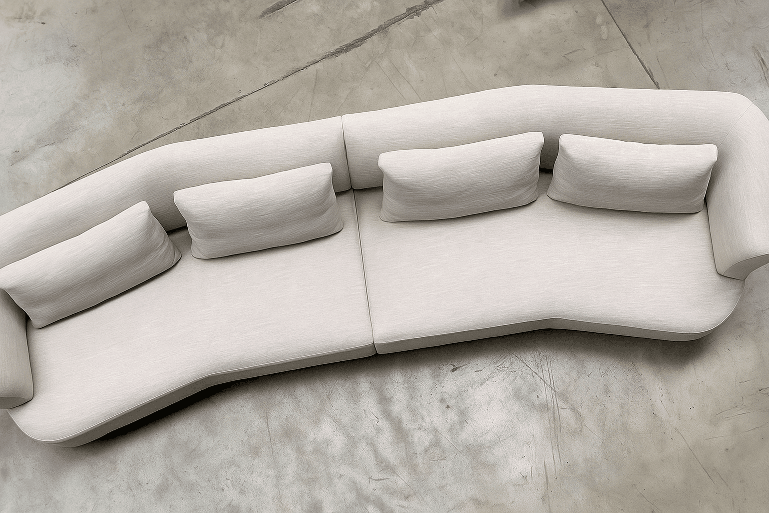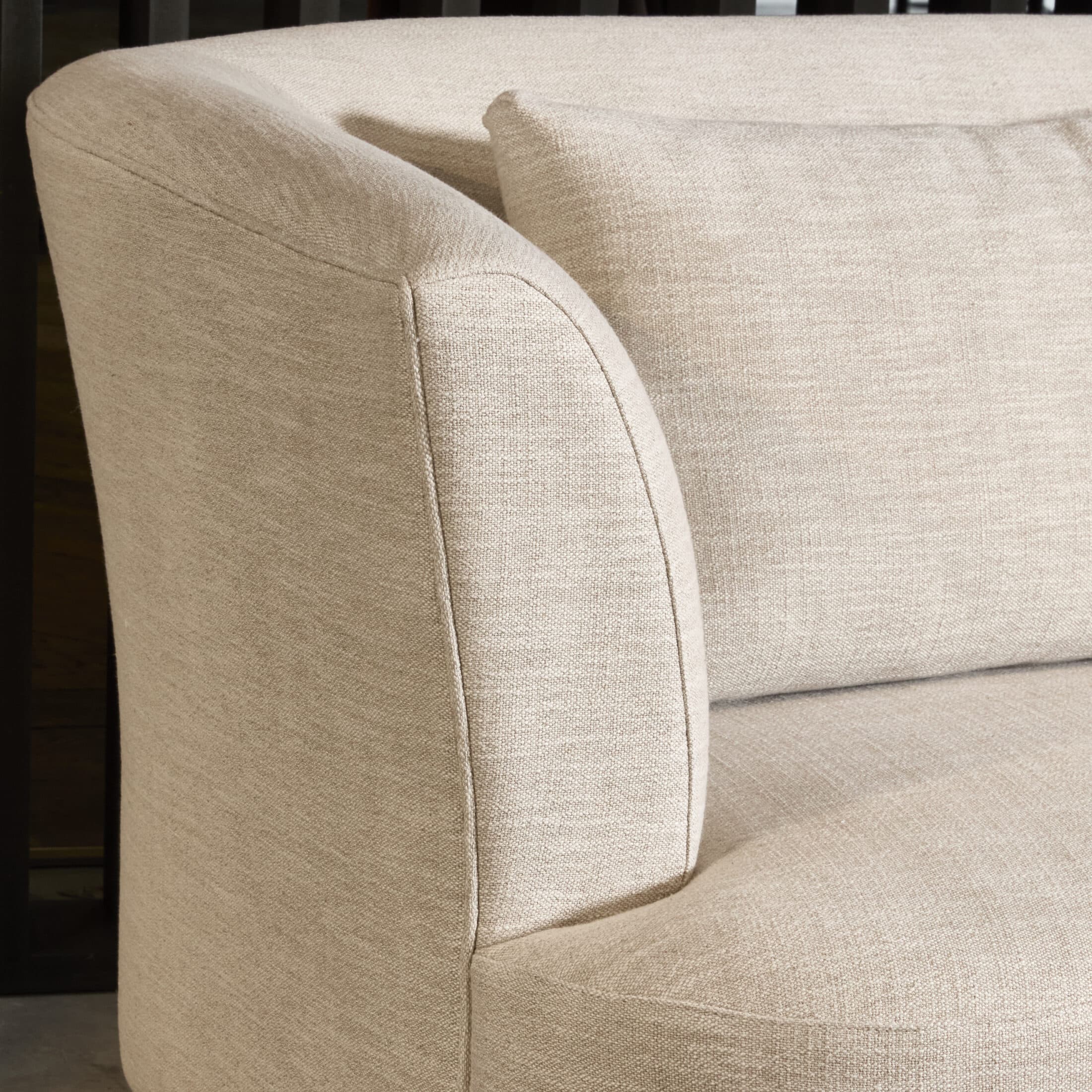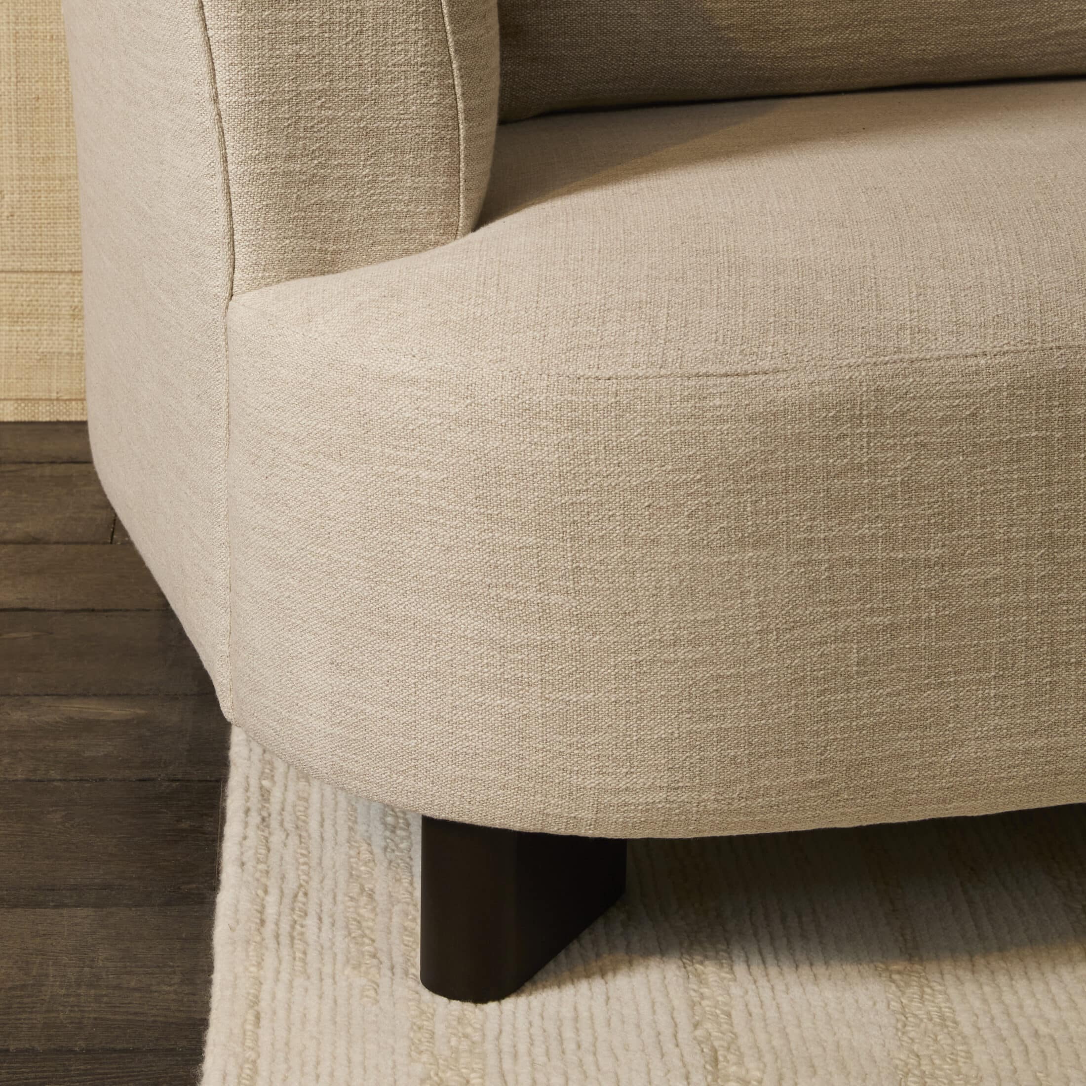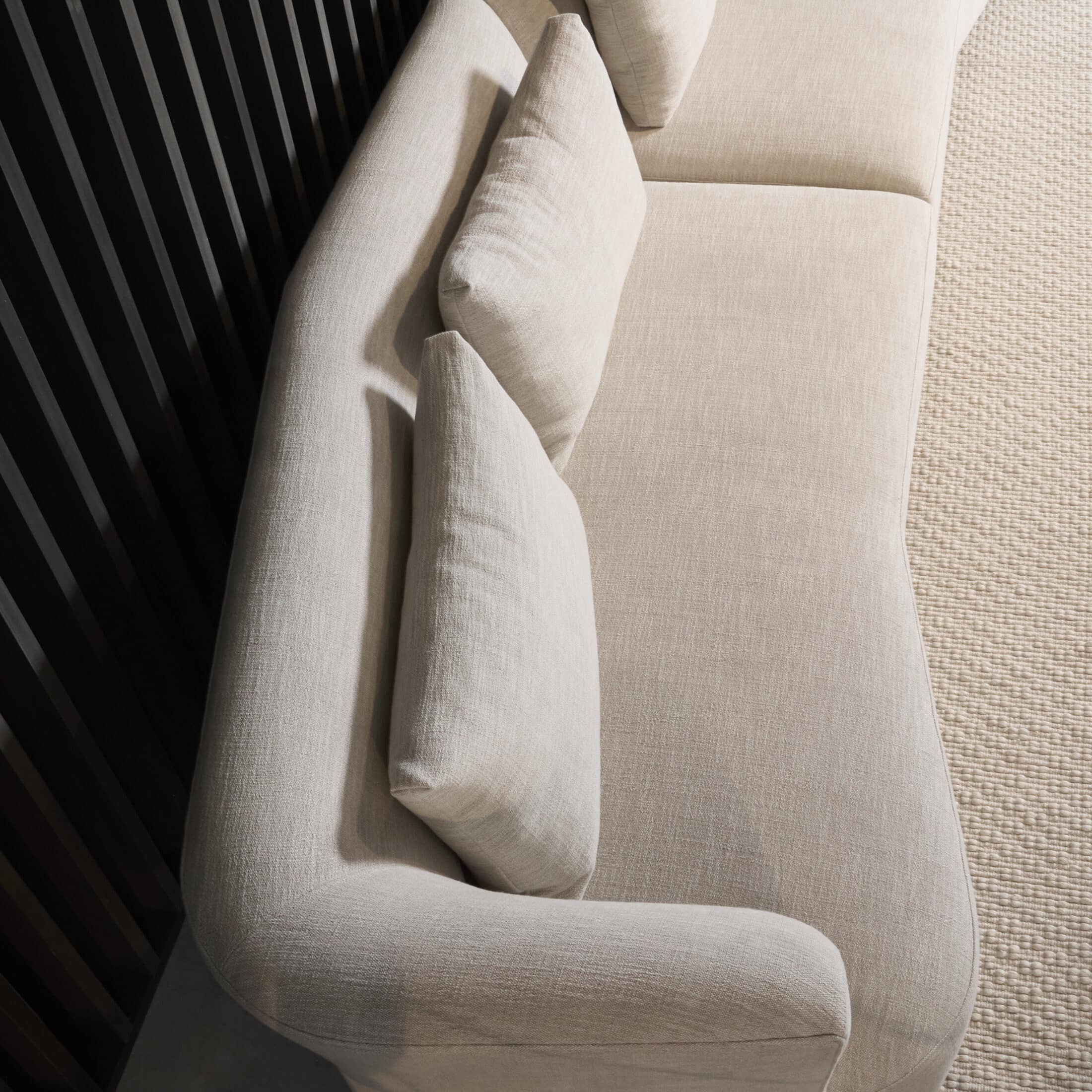 The Charleston sofa features an elegant, gently curved silhouette with soft, asymmetrical lines that flow organically, creating a shape that is both sculptural and inviting — perfect for contemporary interiors.