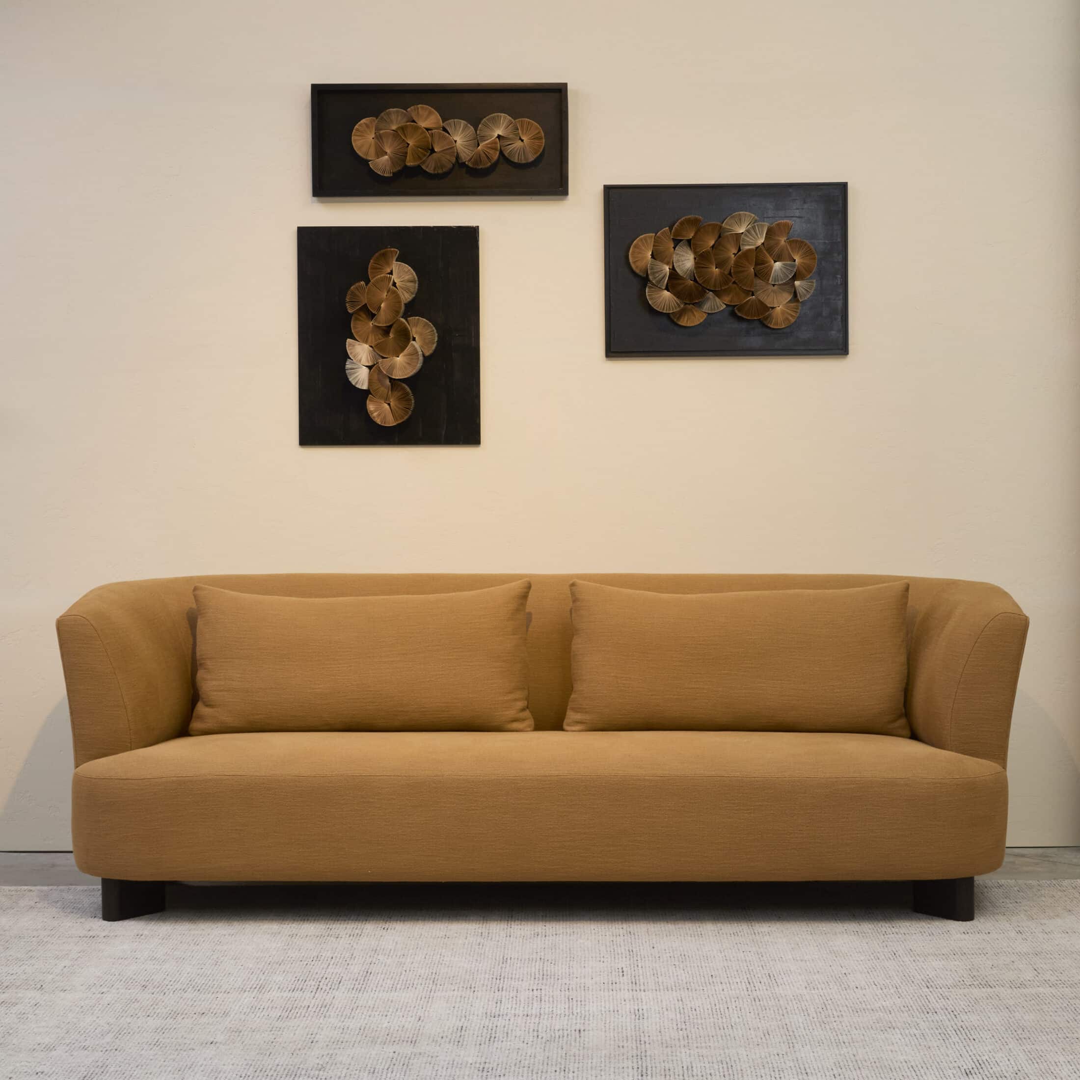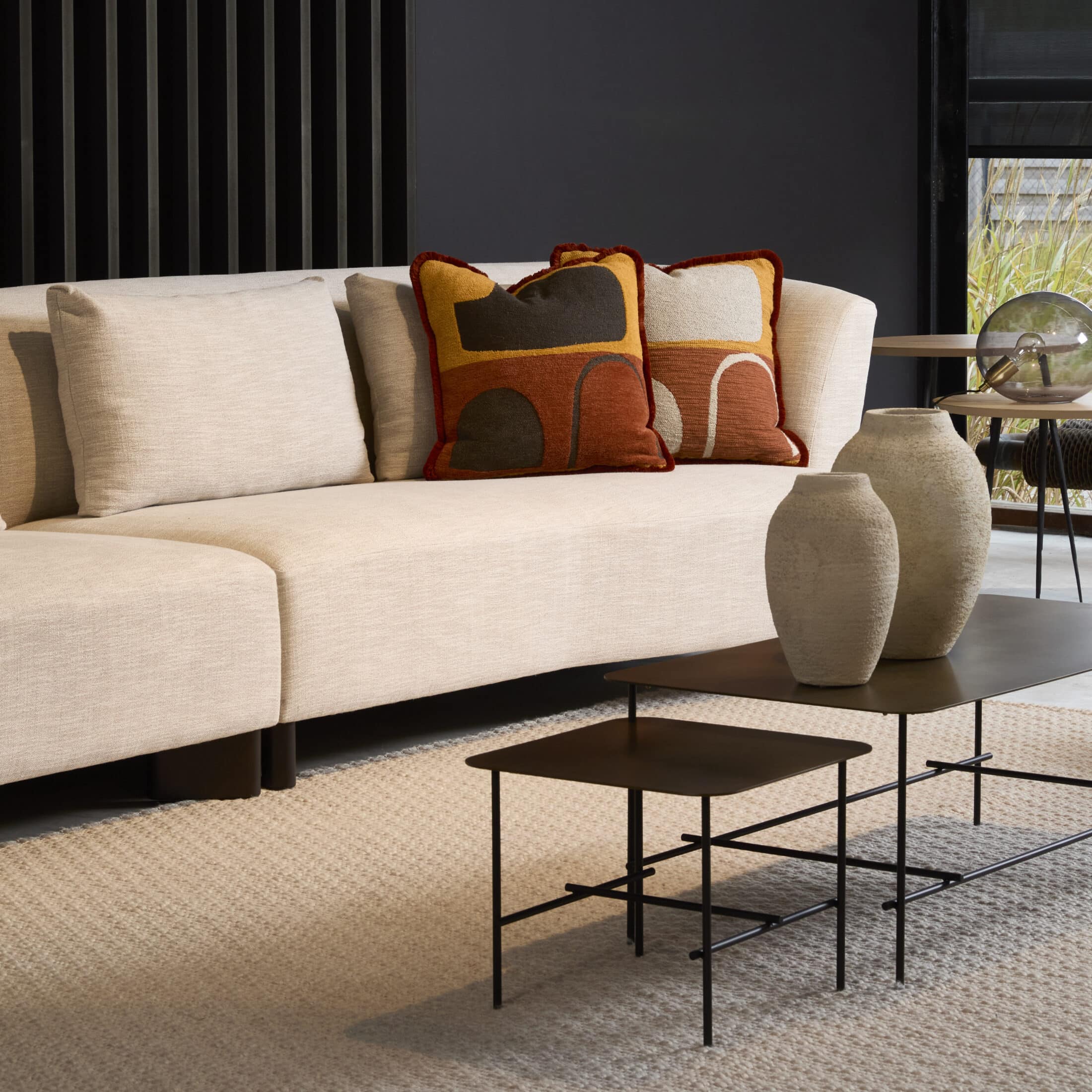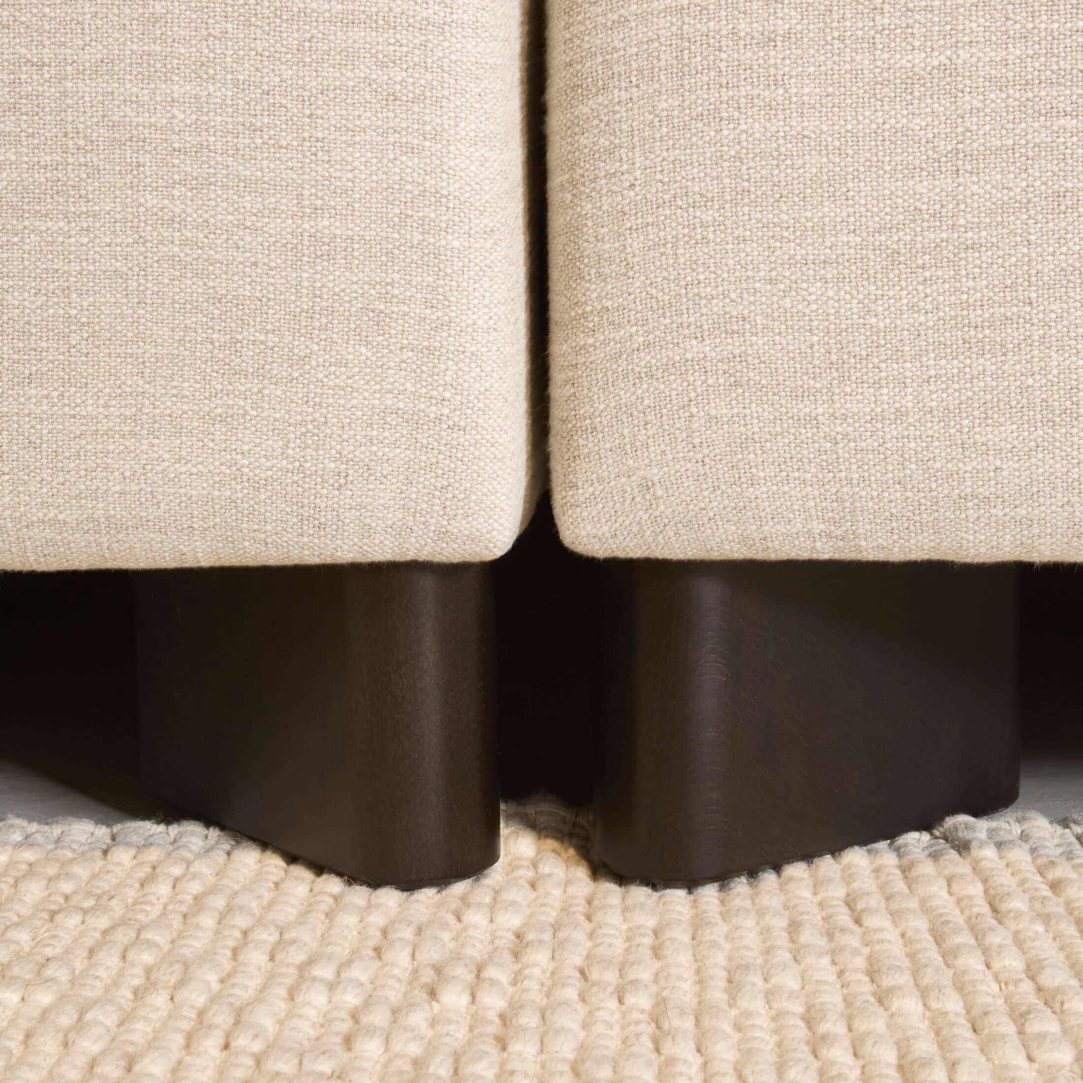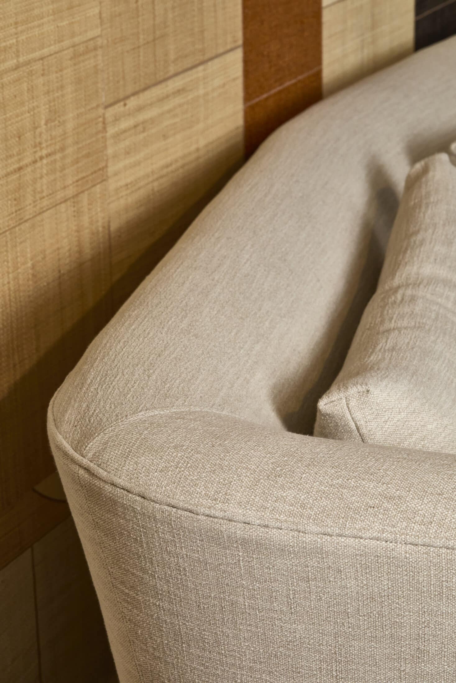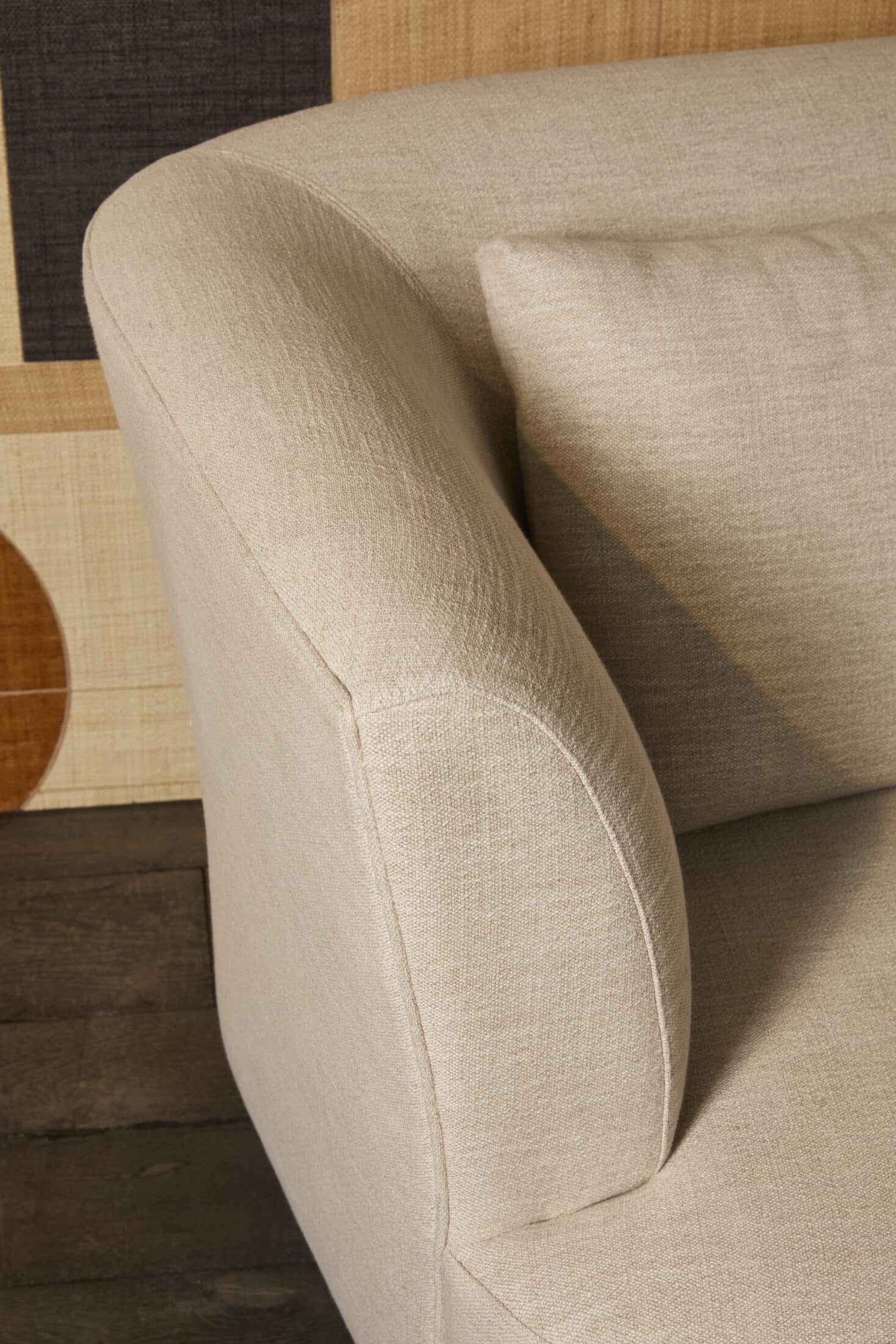 The Charleston sofa features an elegant, gently curved silhouette with soft, asymmetrical lines that flow organically, creating a shape that is both sculptural and inviting — perfect for contemporary interiors.
