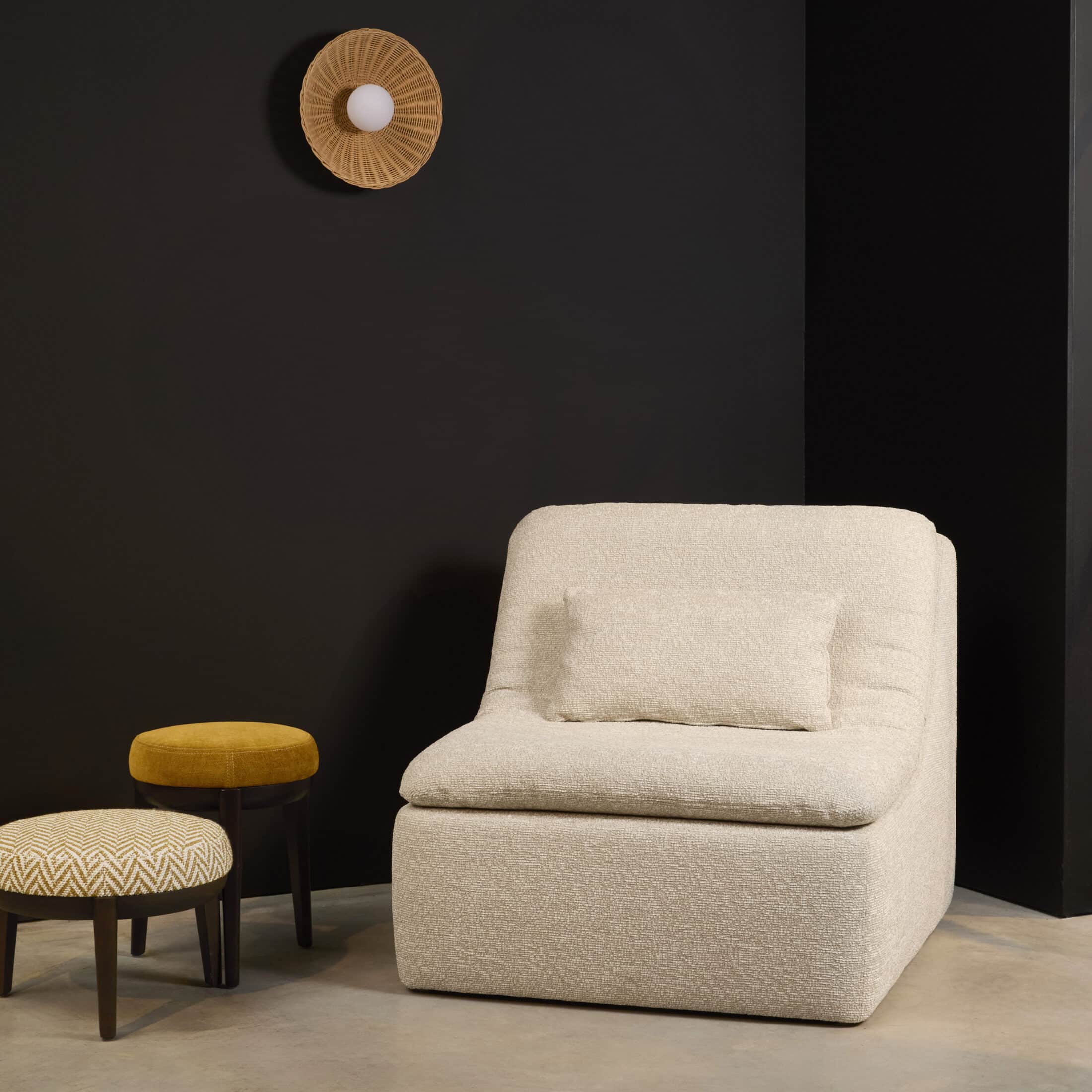 | Width | Depth | Height | Seat | Armrest | Cushions seat | Cushions back | Cushions extra | Fabric |