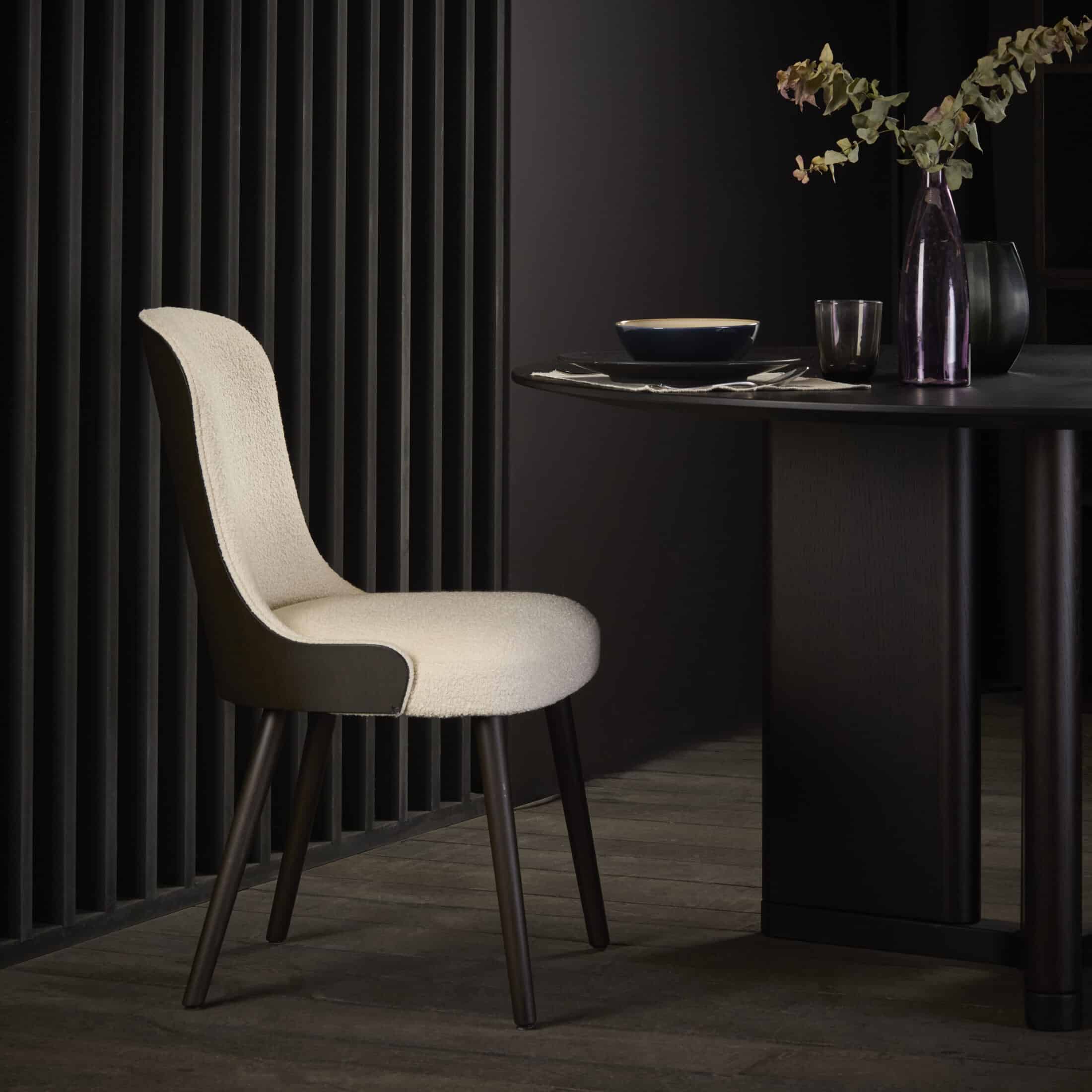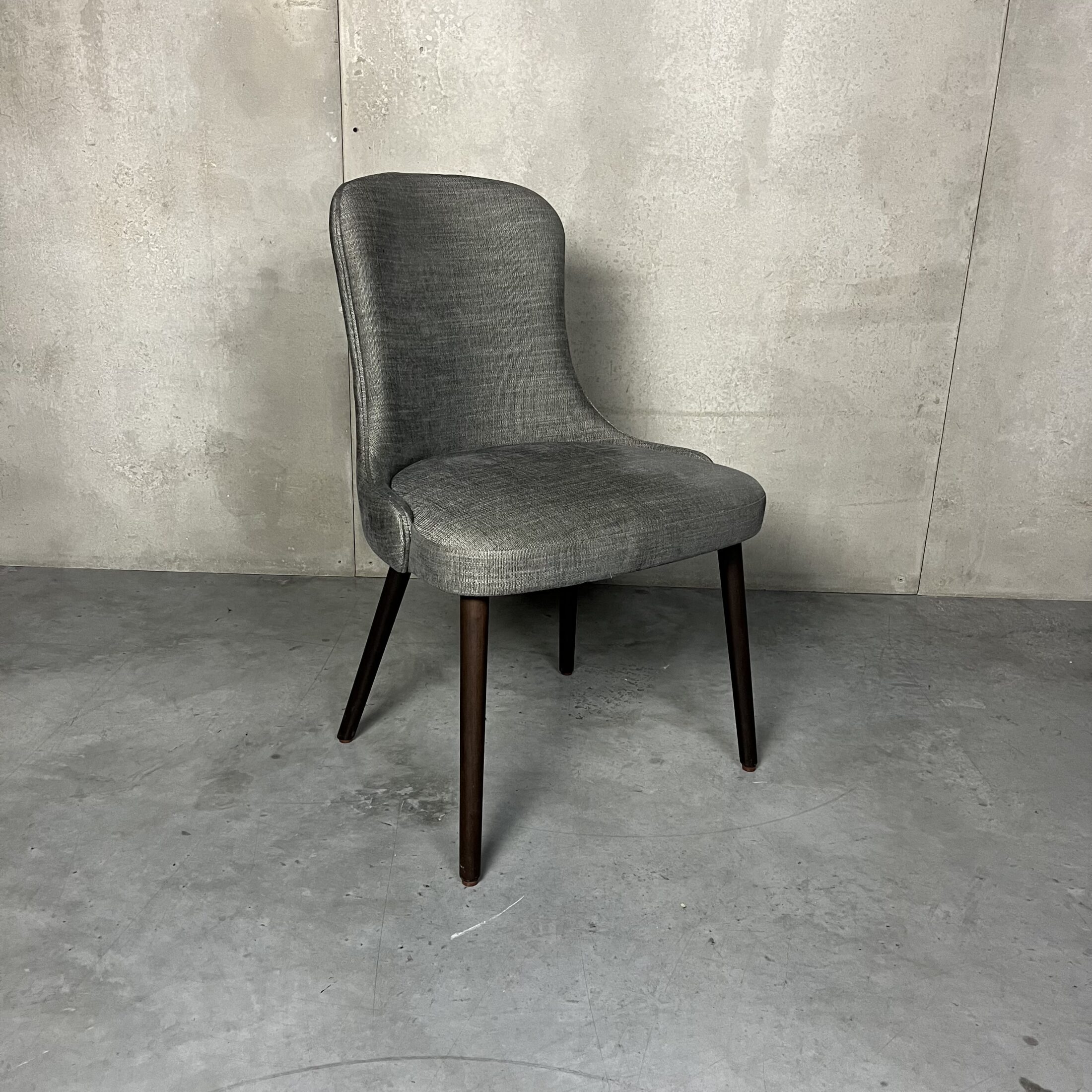 Beechwood and scandinavian hardpine frame, glued, screwed and doweled. Beechwood feet. Stretch belts seat and back. Fully upholstered with buttons.