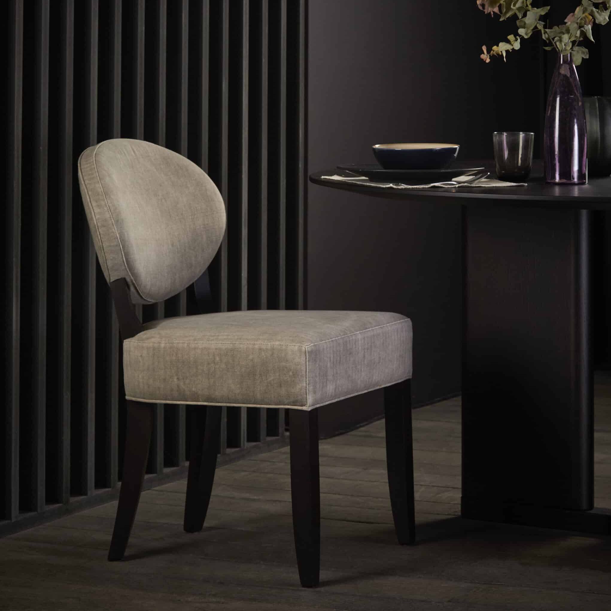 Beechwood and scandinavian hardpine frame, glued, screwed and doweled. Beechwood feet. Stretch belts seat and back. Fully upholstered.