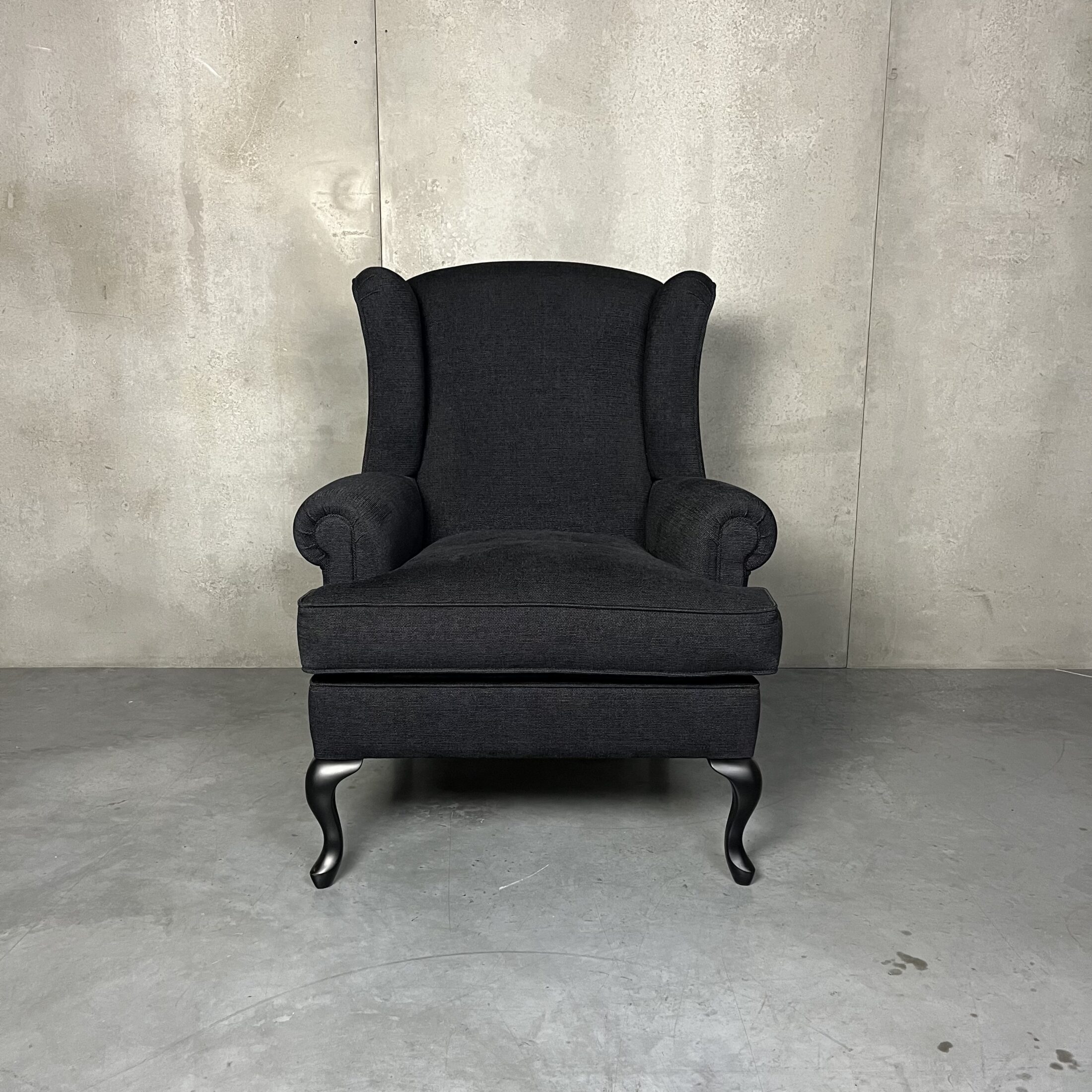 Beechwood and scandinavian hardpine frame, glued, screwed, and doweled. Stretch seat and belts back. Foam seat cushion HR 35 Kg.