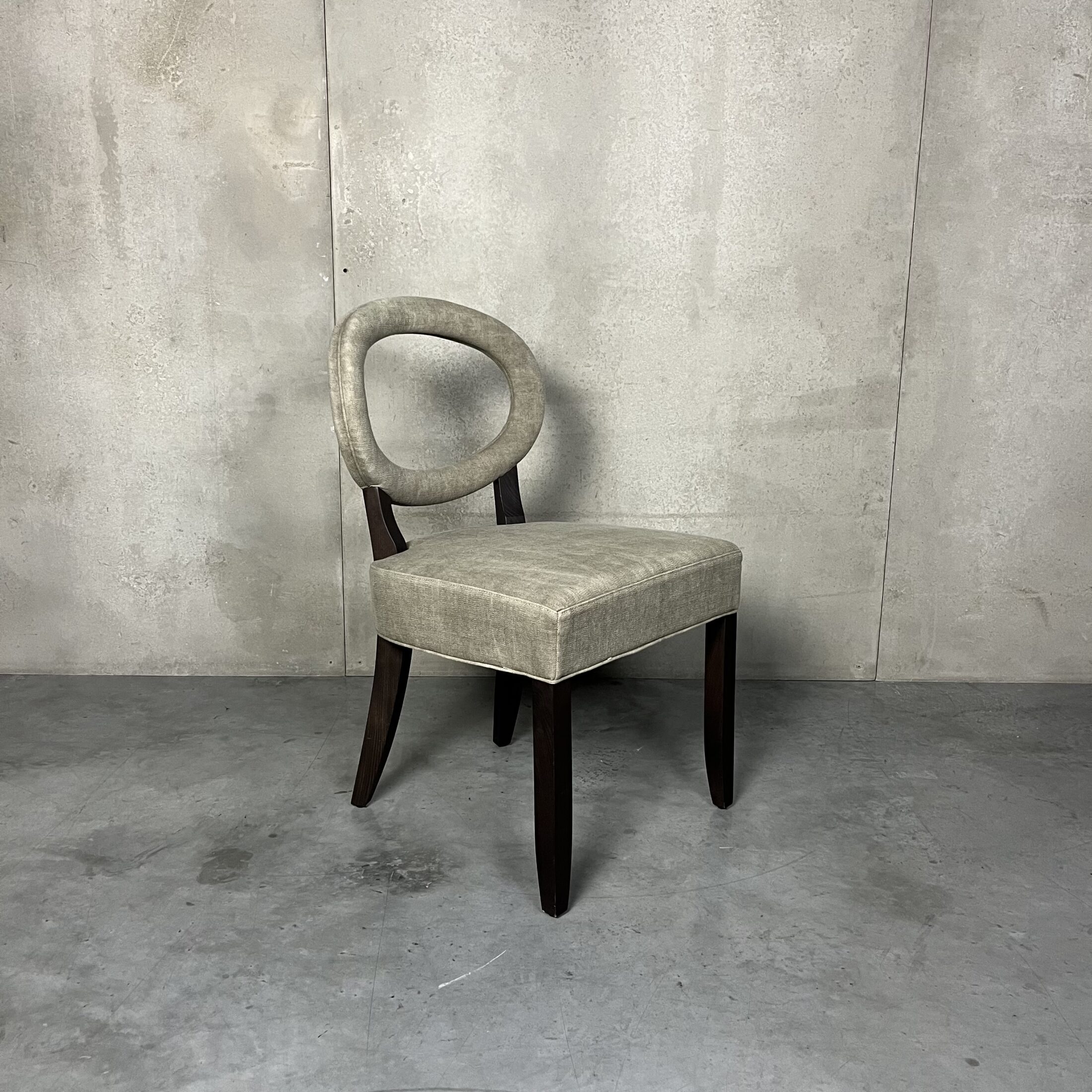 Beechwood frame and feet, glued, screwed and doweled. Stretch belts seat. Fully upholstered. Only available in a limited selection of fabrics.