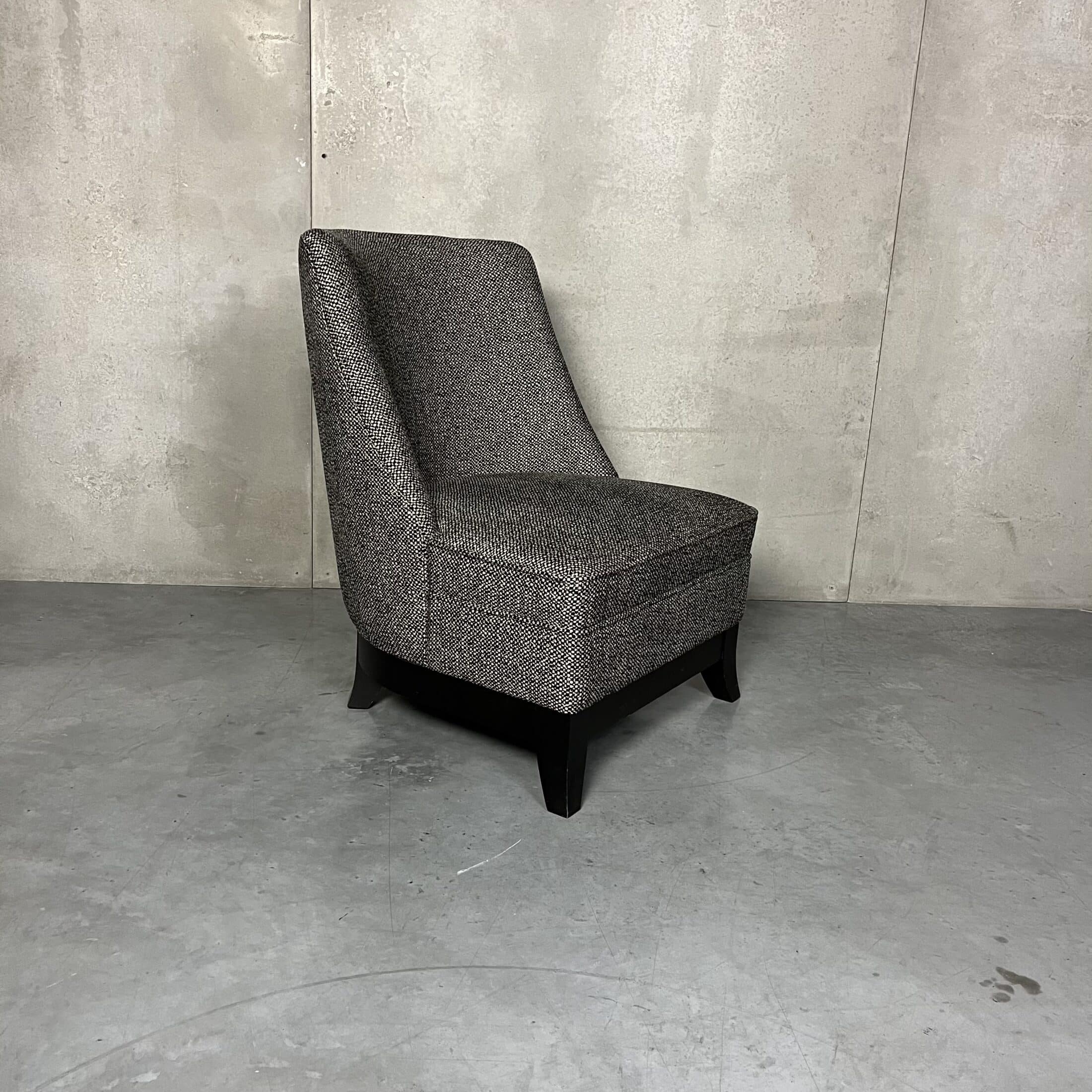 Plywood frame, beech wood legs. Interlocked Elastic straps have been used for seating. Fix seat with a combination of HR 40 kgs 40 kgs soft foams in a polyester wadding. Interior back upholstered with HR 30 kg foam. Available only with walnut veneered wood external back.