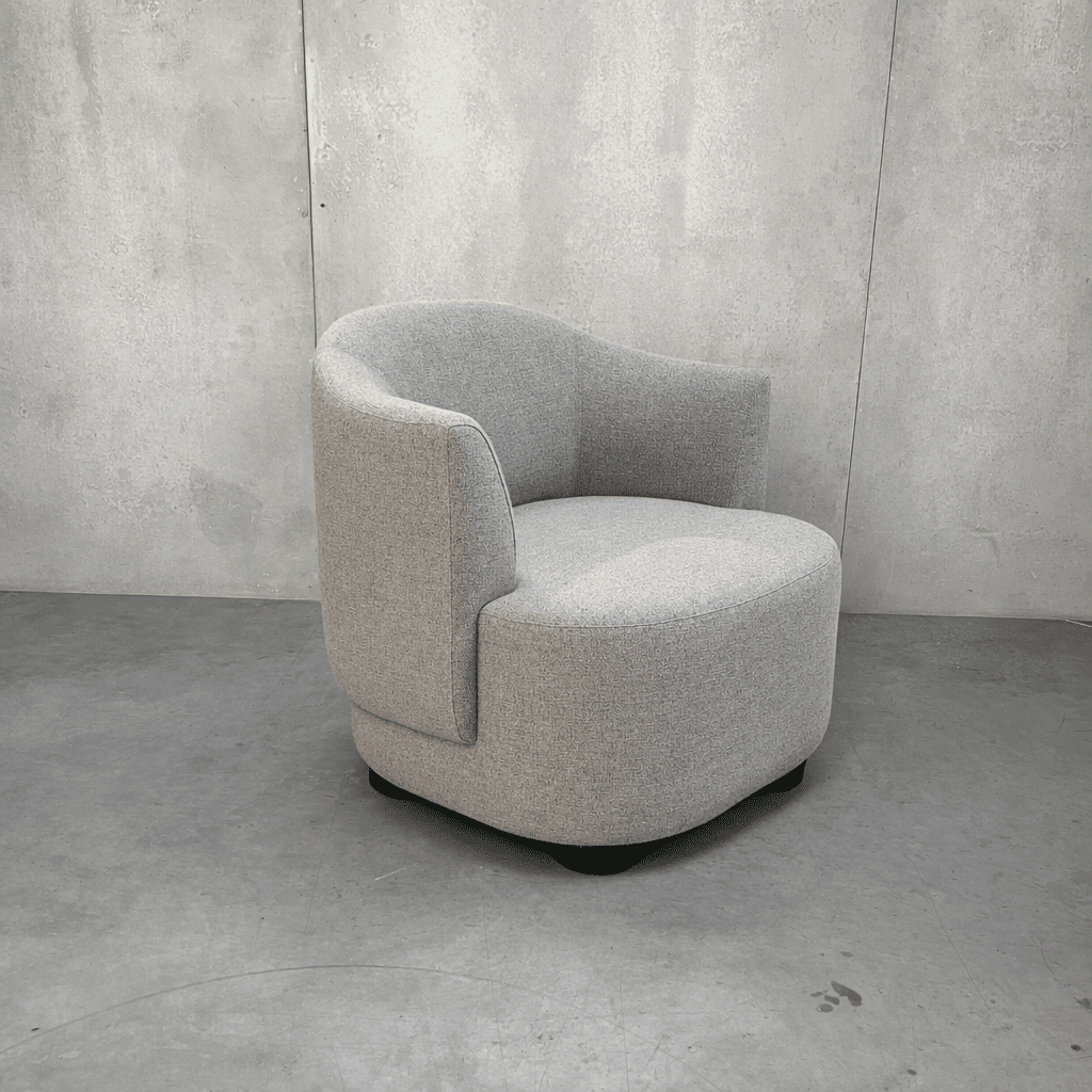 Beech wood and Scandinavian hardpine frame (mortise & tenon construction) covered with foam & fibre. Solid beechwood legs. Stretch belts seat & back. Fixed seat cushion with polyurethane foam 40 kg/m3 and polyester wadding. Fully upholstered. Railroaded (Top of pattern runs across the roll).