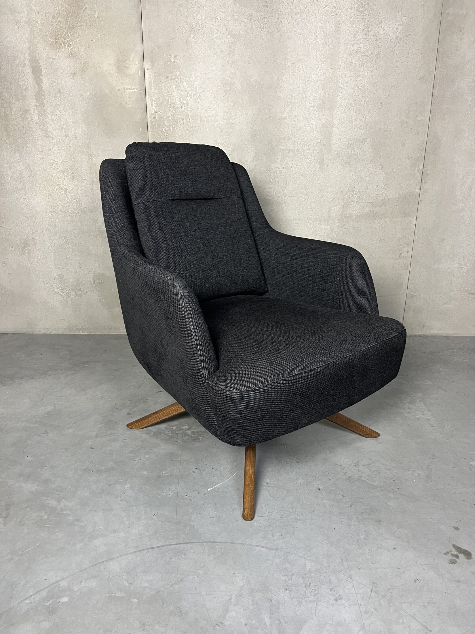Beech, pine wood and MDF frame. Beech wood feet. HR 35 kg/m3 foam seat cushion with a polyester wadding. Feather and fibre back cushions. Spring mattress 14 cm thick. Revolving bed system (conversion of sofa into a bed by one movement only, without the necessity of removing seat and back cushions. Ideal for both contract and domestic use.