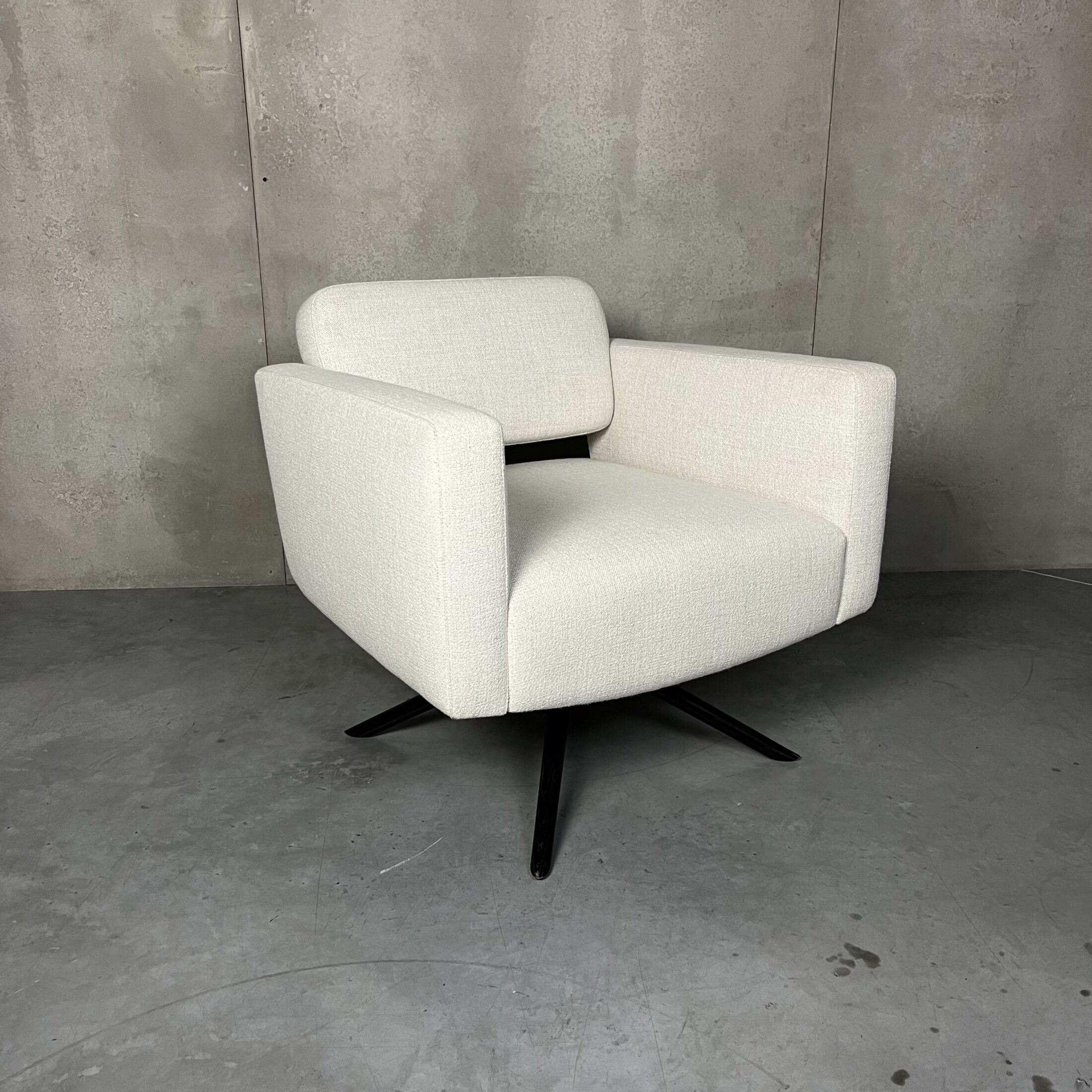 Sa structure est réalisée en hêtre et en pin scandinave (assemblage à tenons et mortaises), avec une base en hêtre massif. L’assise et le dossier sont soutenus par des sangles élastiques pour un maintien optimal. Le coussin d’assise associe une mousse polyuréthane à un garnissage supérieur et inférieur mêlant plumes et fibres, tandis que les coussins de dossier sont entièrement garnis de plumes pour un confort luxueusement moelleux.