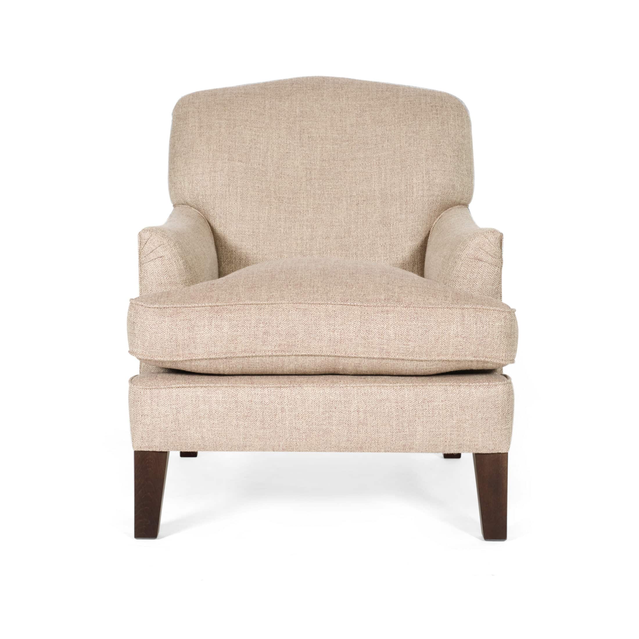 Structure en chêne massif assemblé par tenons et mortaises. Suspension sangles élastiques entrecroisées. Assise fixe mousse HR 40 kg/m³ sous ouate polyester. Dos garni Mousse 30 kg/m³. Garnissage fixe.