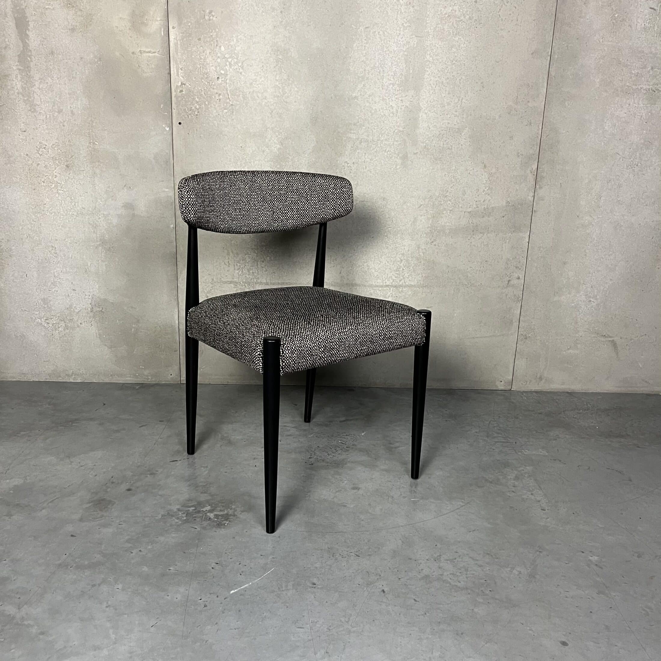 Structuur in multiplex en beukenhout, vervaardigd met pen-en-gatverbindingen. Sokkel en poten in beukenhout. Zitcomfort met elastische singels. Schuim van 40 kg met een polyesterwattering. Volledig gestoffeerd.