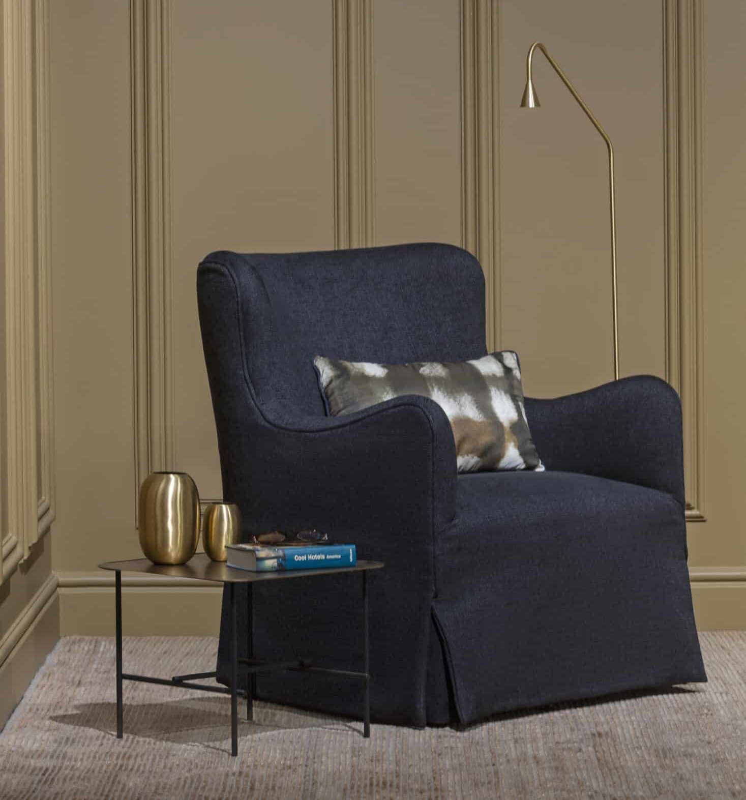 Massief beuken en grenen frame in elkaar gezet met pen en gat verbindingen. Massief beuken poten. Ophanging met gekruiste elastische banden. Vaste zitting 35 kg/m³ schuim met een polyester vulling. Rug gevuld met 30 en 25 kg/m³ schuim. Vaste Bekleding.